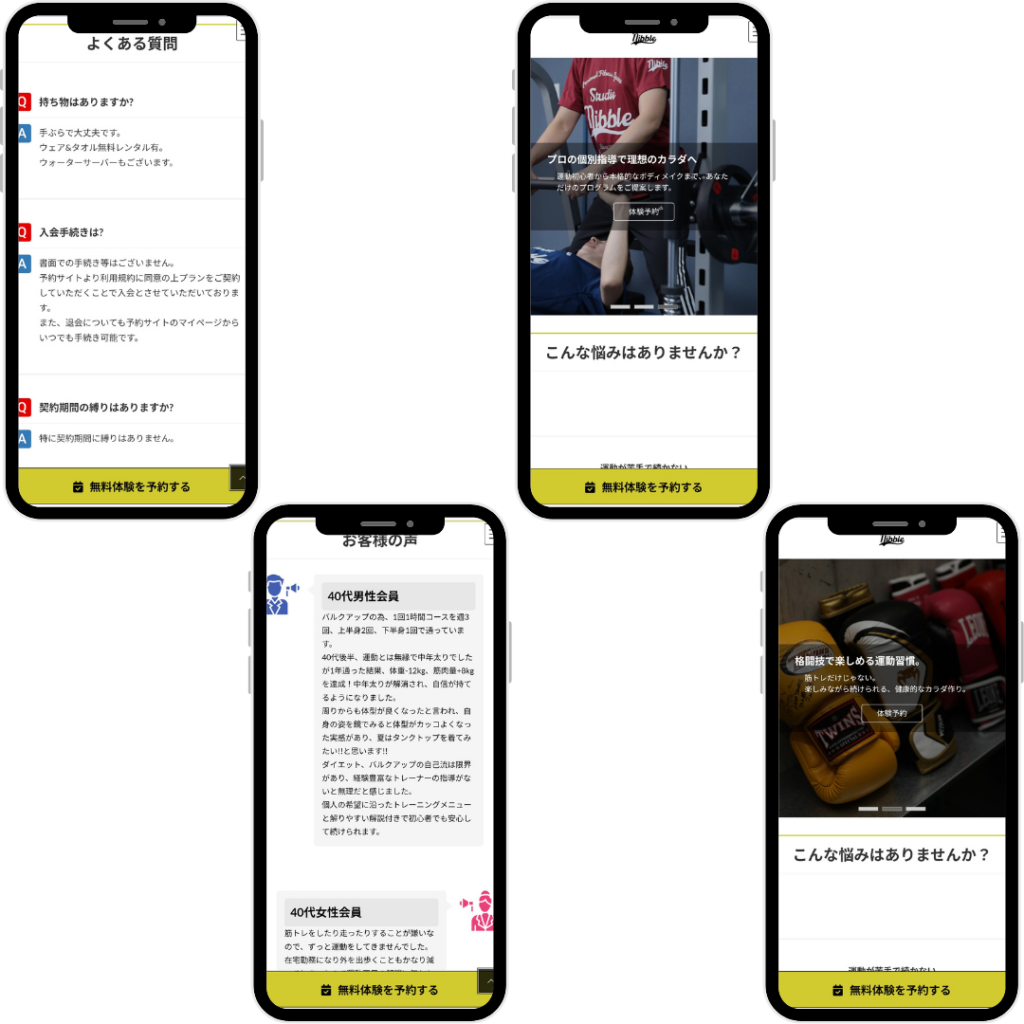 集客とブランディングを意識したパーソナルジムの公式サイト。SEO対策と予約導線の最適化により、Webからの問い合わせ率を改善。